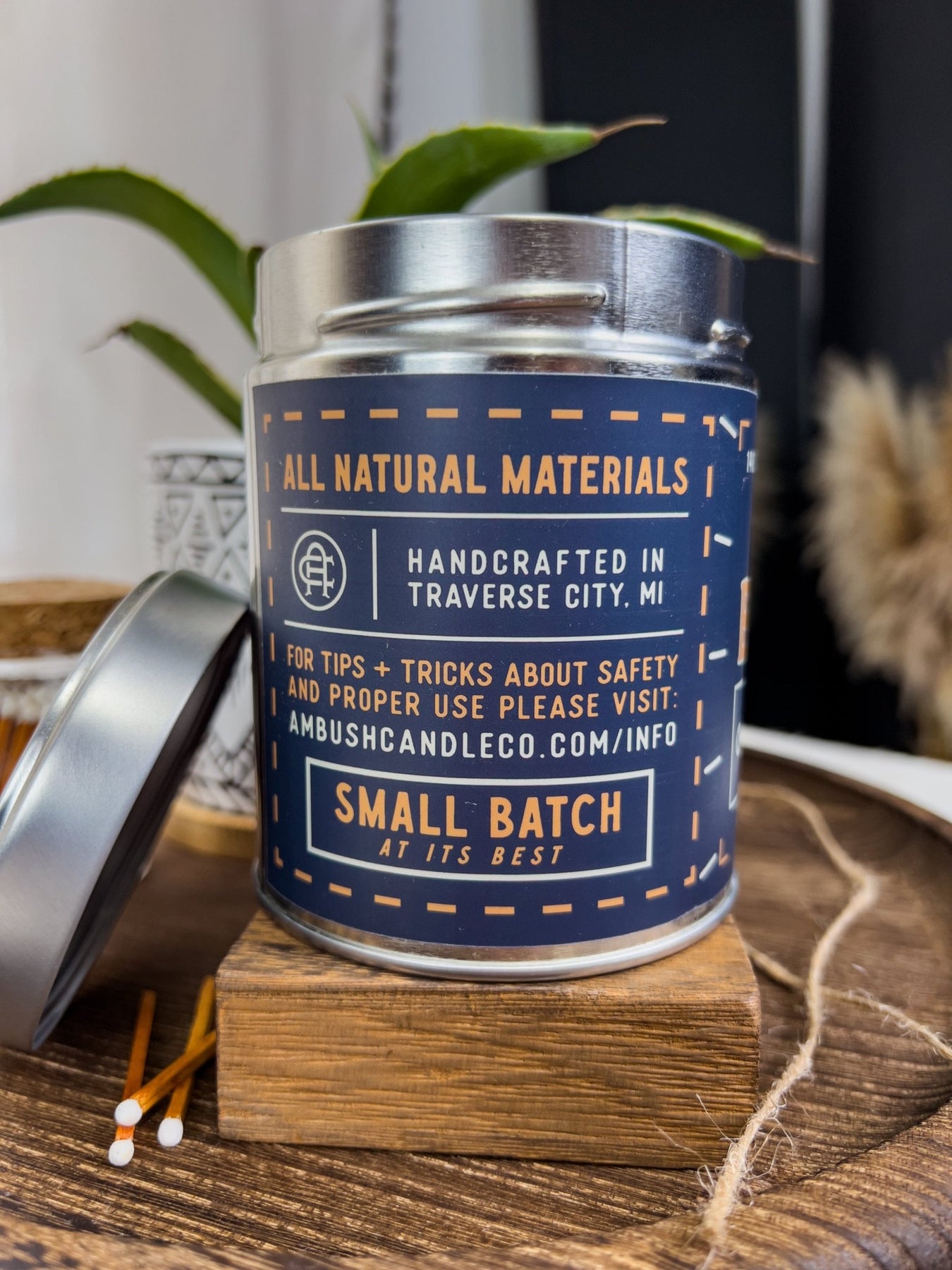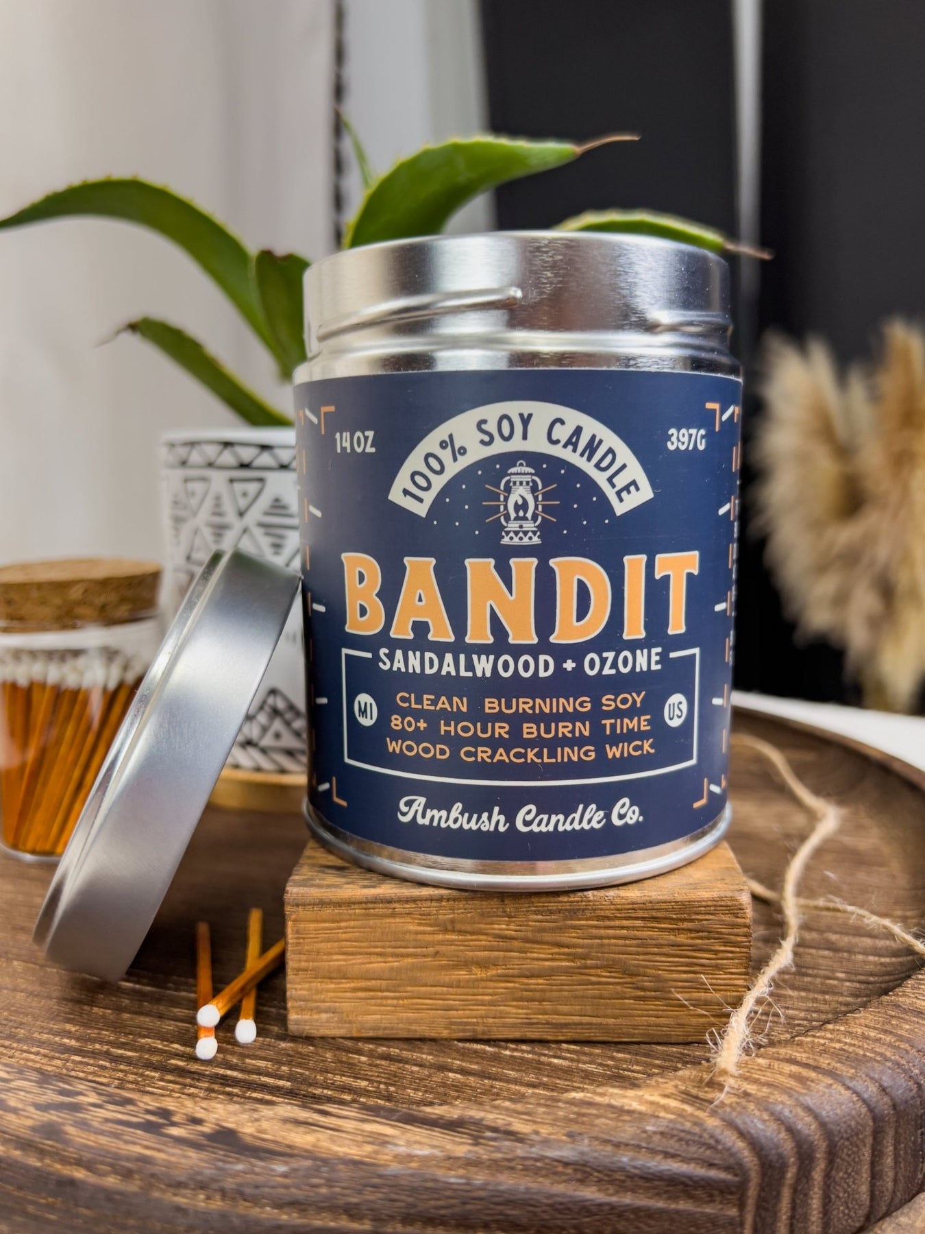 Experience luxury and warmth with our Sultry Bandit Soy Candle. Made with high-quality materials and sustainably sourced ingredients, this candle features notes of sandalwood, ozone, and leather to create an 80+ hour burn time. Embrace the enchanting scent and clean burn of an American-made product.