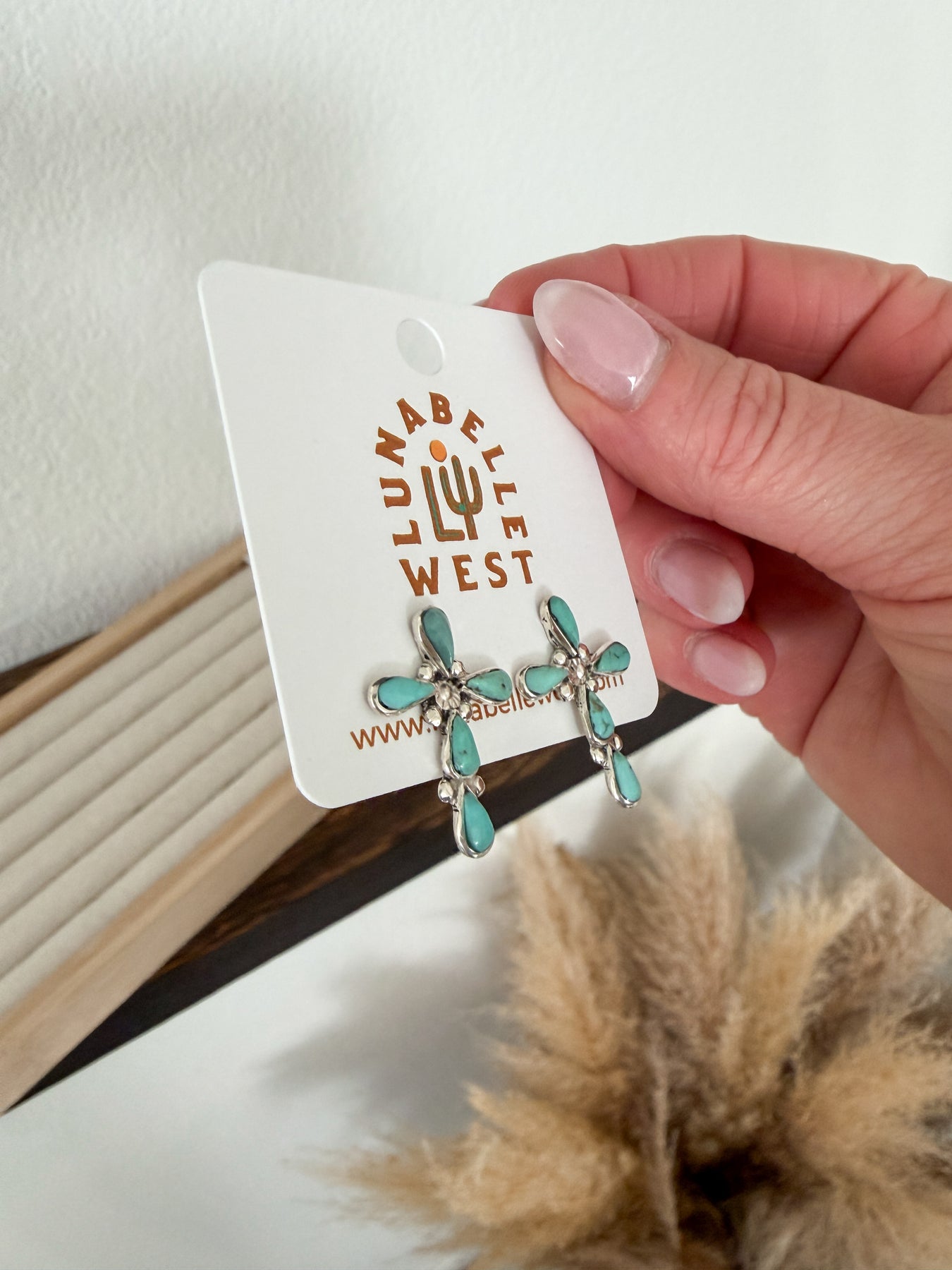 Genuine sterling silver meets classic turquoise in these stunning inlay cross earrings. True statement pieces with a timeless touch of Western elegance for any jewelry lover.
