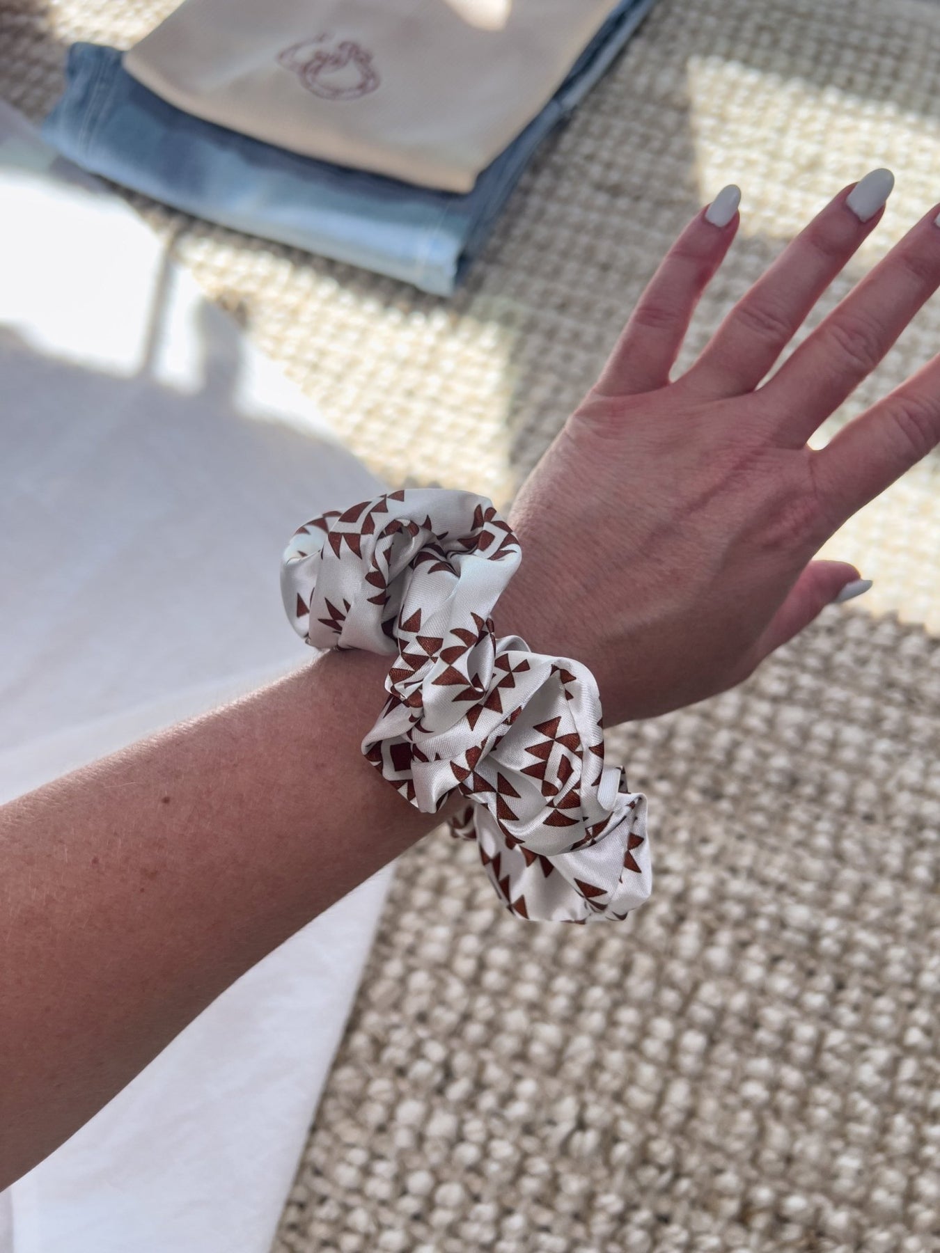 Add a pop of Western flair to your hair routine with these fun scrunchies in bold prints. Made from silky fabric, they’re gentle on your hair to help prevent breakage while keeping your style secure all day. Whether you're throwing your hair up on the go or adding a finishing touch to your outfit, these scrunchies bring the perfect mix of function and flair. You will receive one scrunchie/three are pictured.