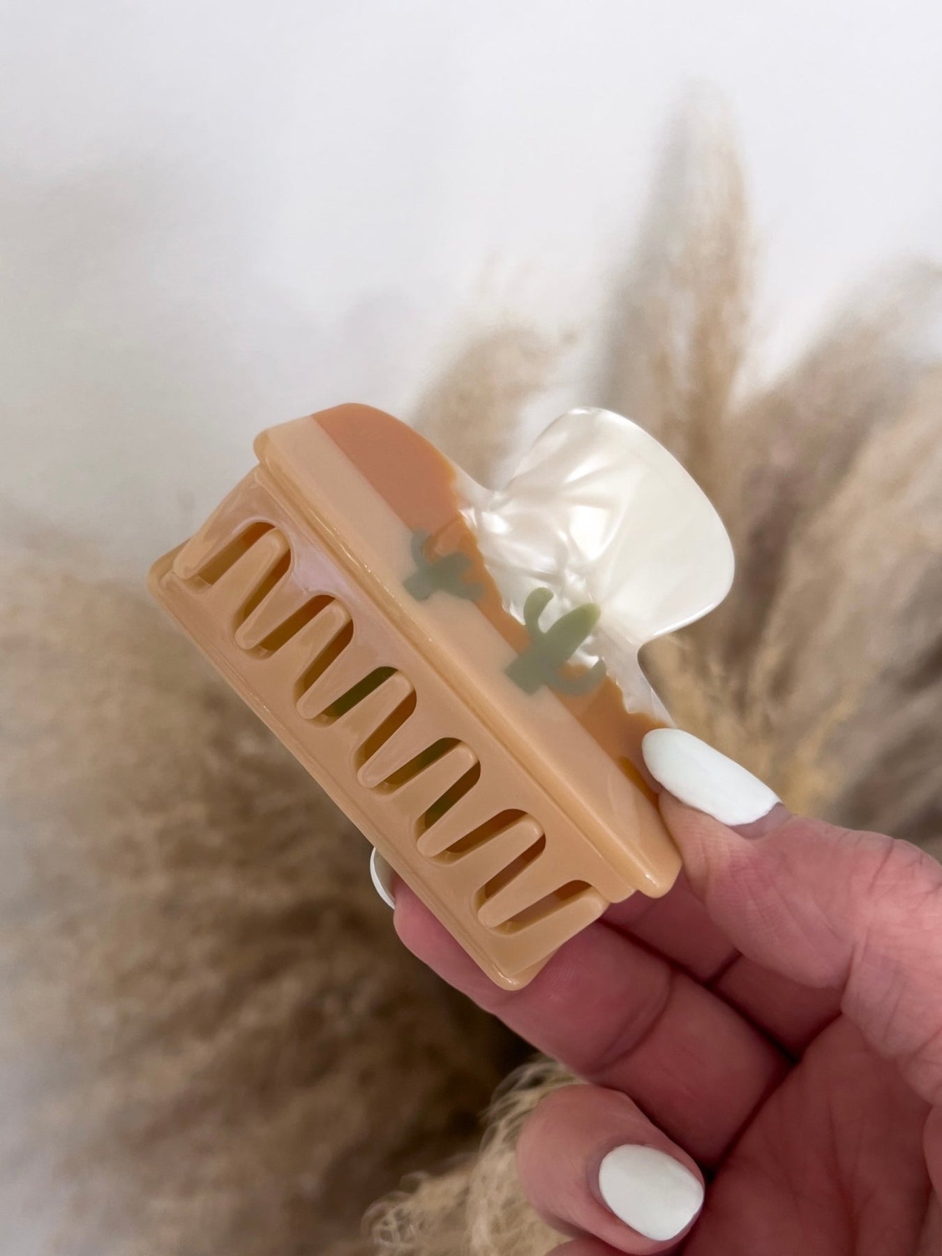 Inspired by the natural beauty of the desert, this hair clip is a playful yet practical accessory for any hair type. Made from durable, eco conscious acetate, it offers a strong hold without compromising on style or sustainability.