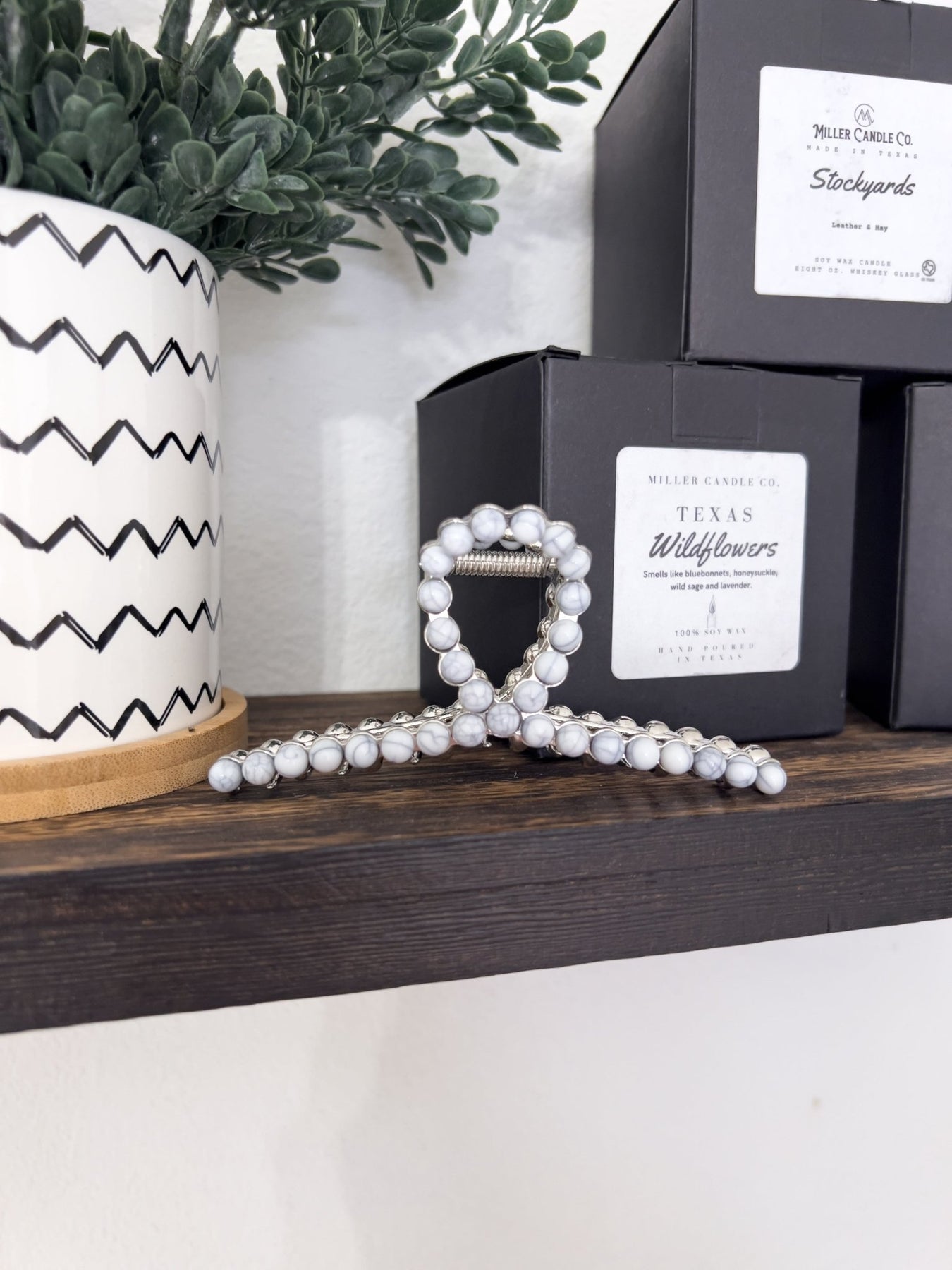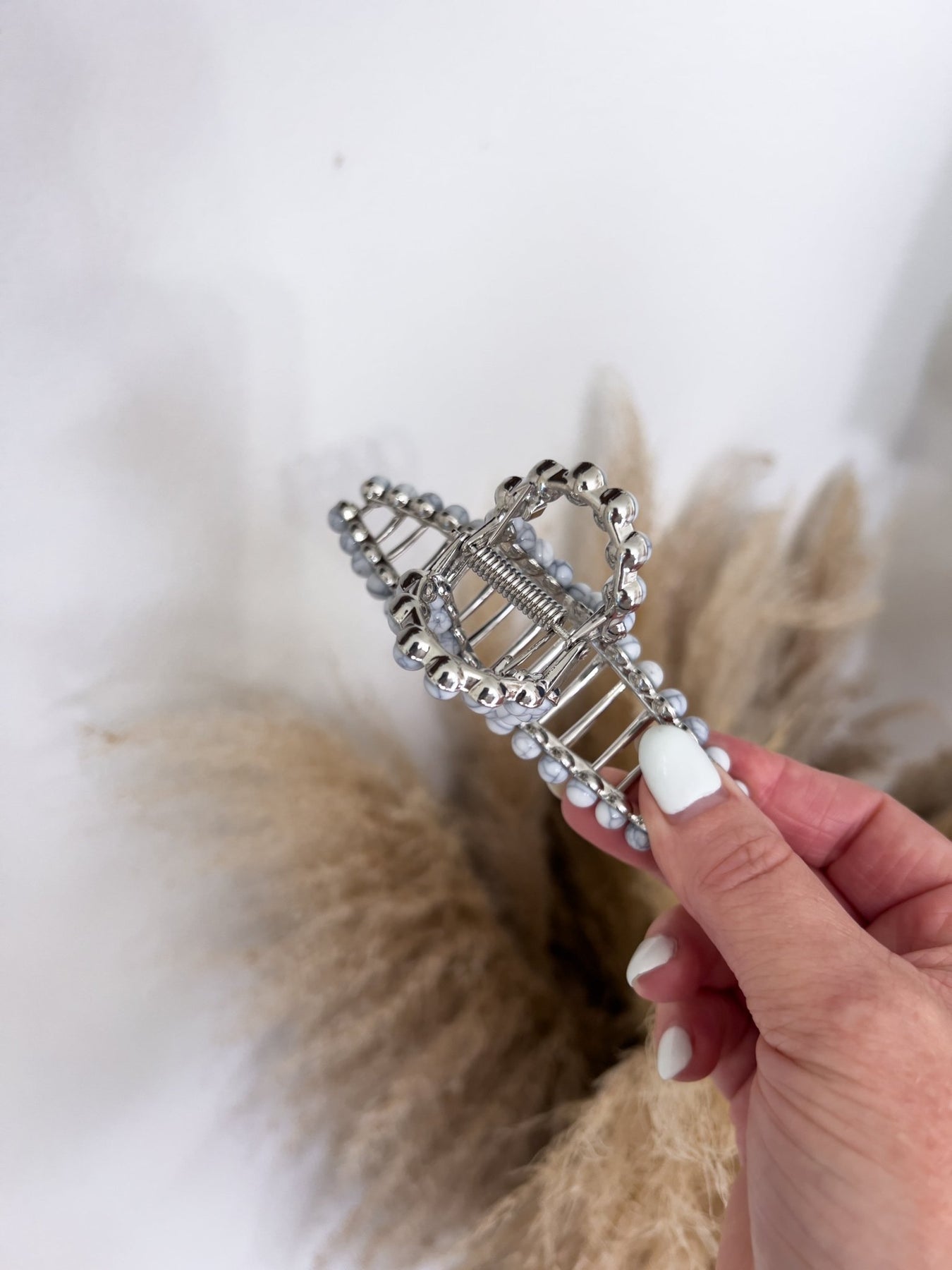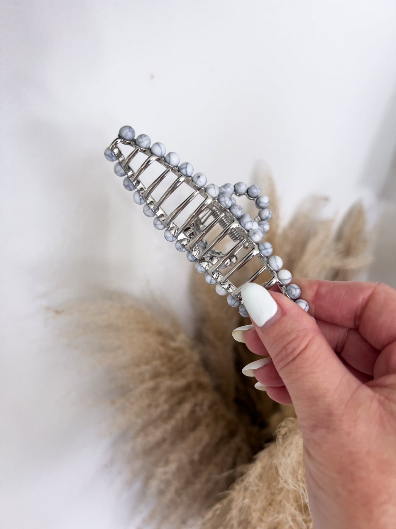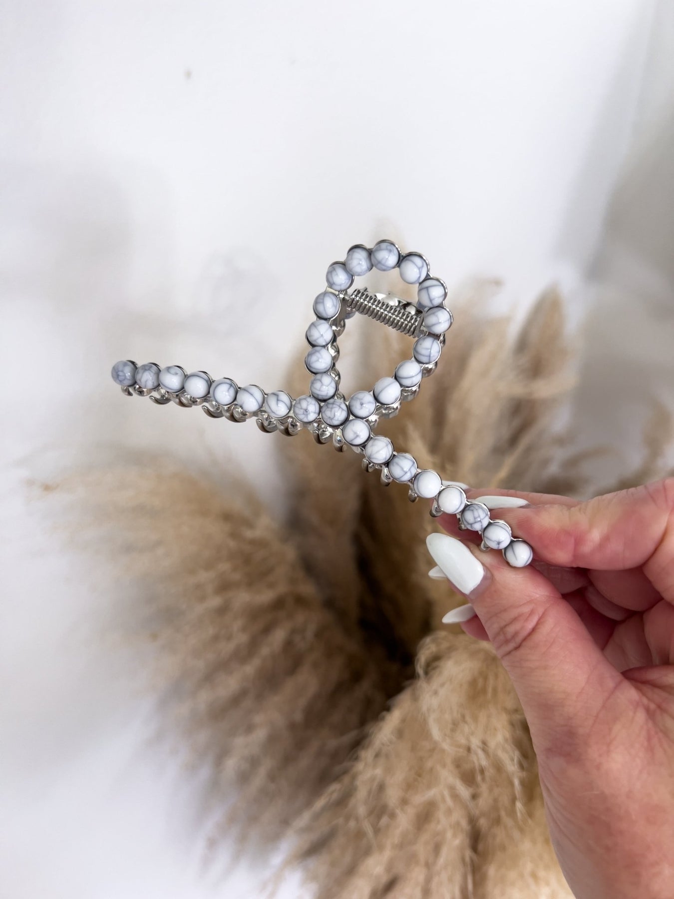 Using natural stone accents, this metal claw clip is the perfect accessory to add style to any look.