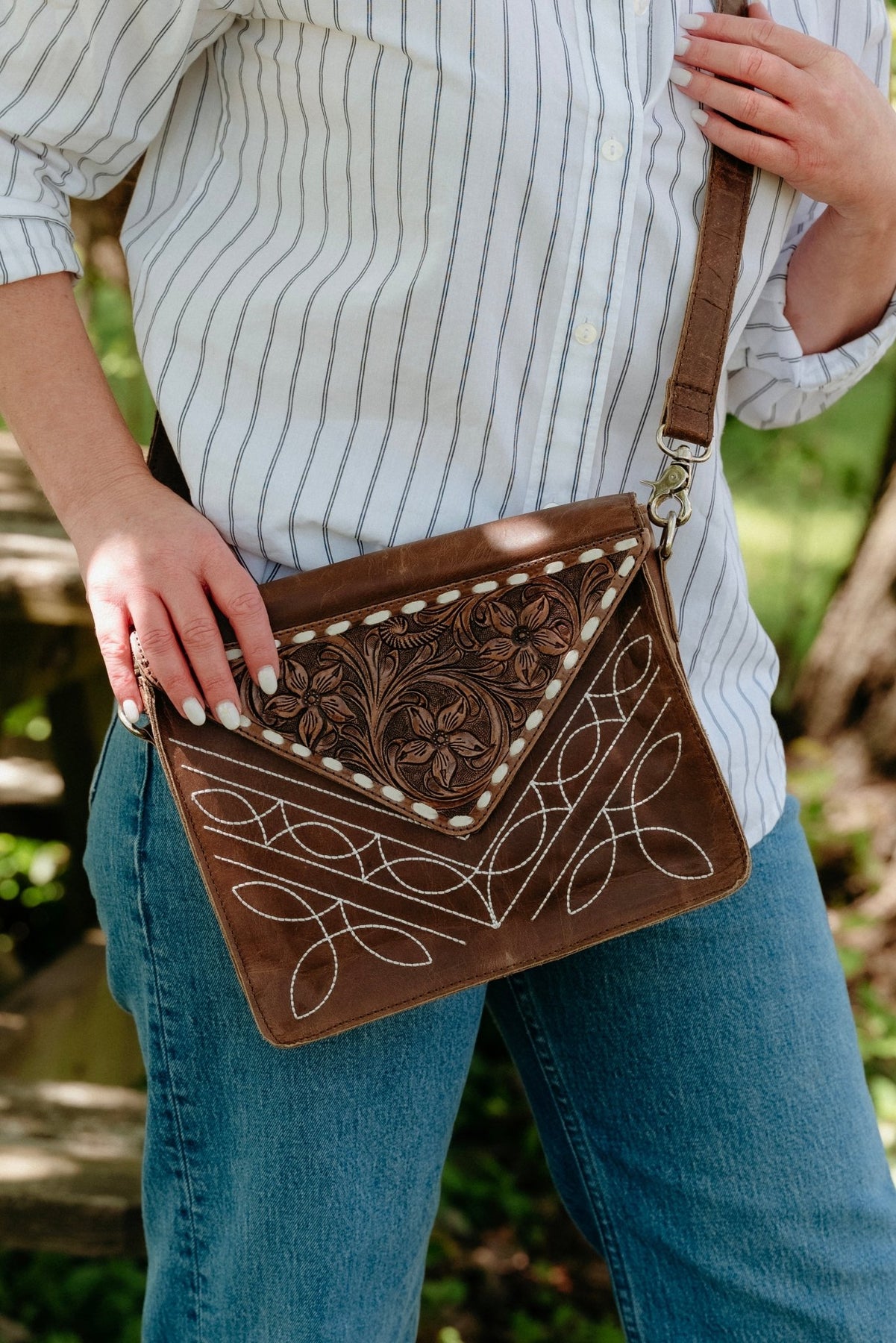 Made with gorgeous genuine leather, this bag is bringing major Western energy with bootstitch details and a tooled flap that’s chef’s kiss. It fits all your daily must-haves and instantly upgrades your look from cute to can’t stop staring. Trust us—you’re gonna want to take it everywhere.