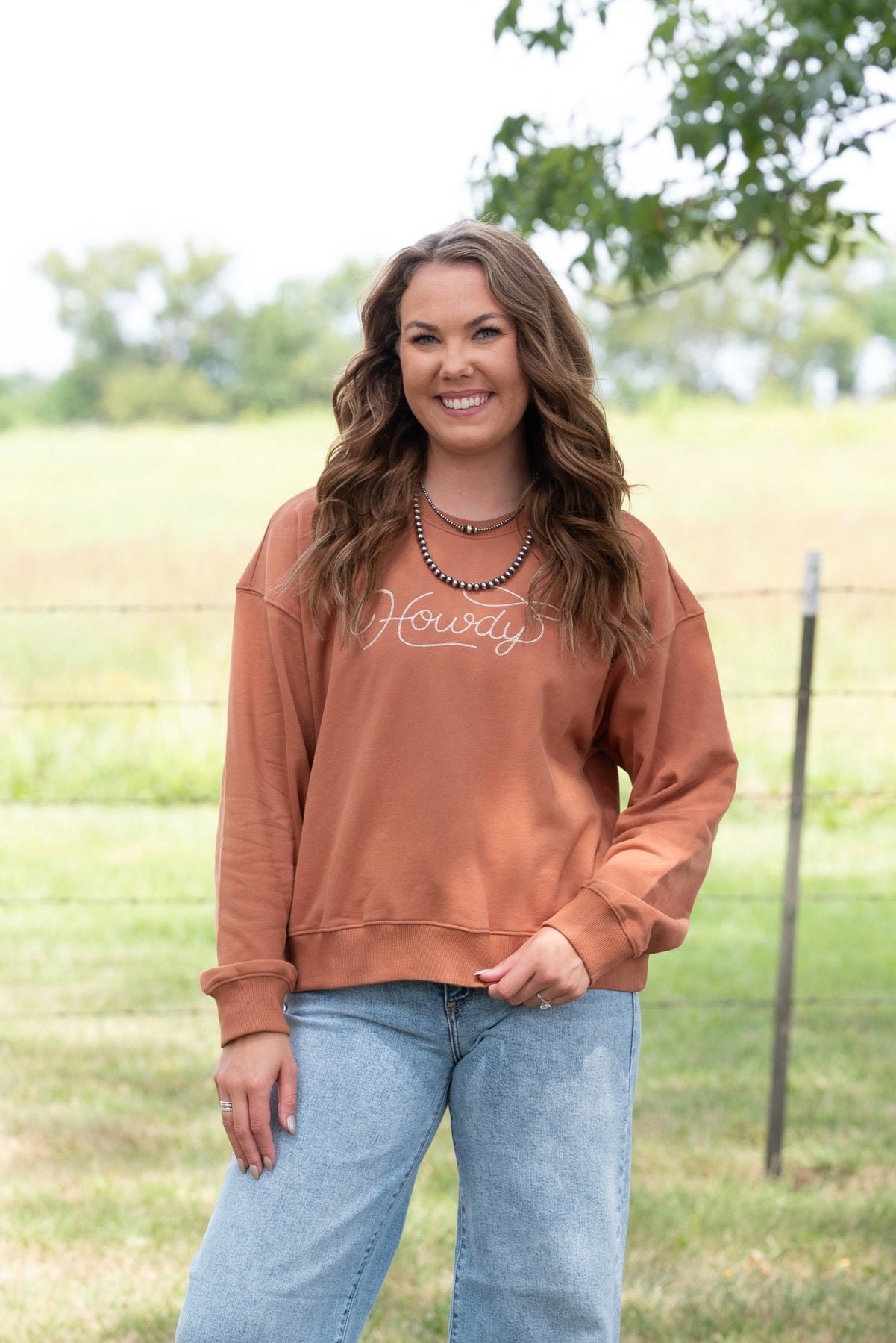 Say hello to comfort with a Western twist. This relaxed fit crewneck is embroidered on the front and made from 100% soft cotton in a rich, earthy hue. Comfy enough for running errands yet stylish enough to dress up for a girls’ day, it’s the perfect blend of cozy and chic.