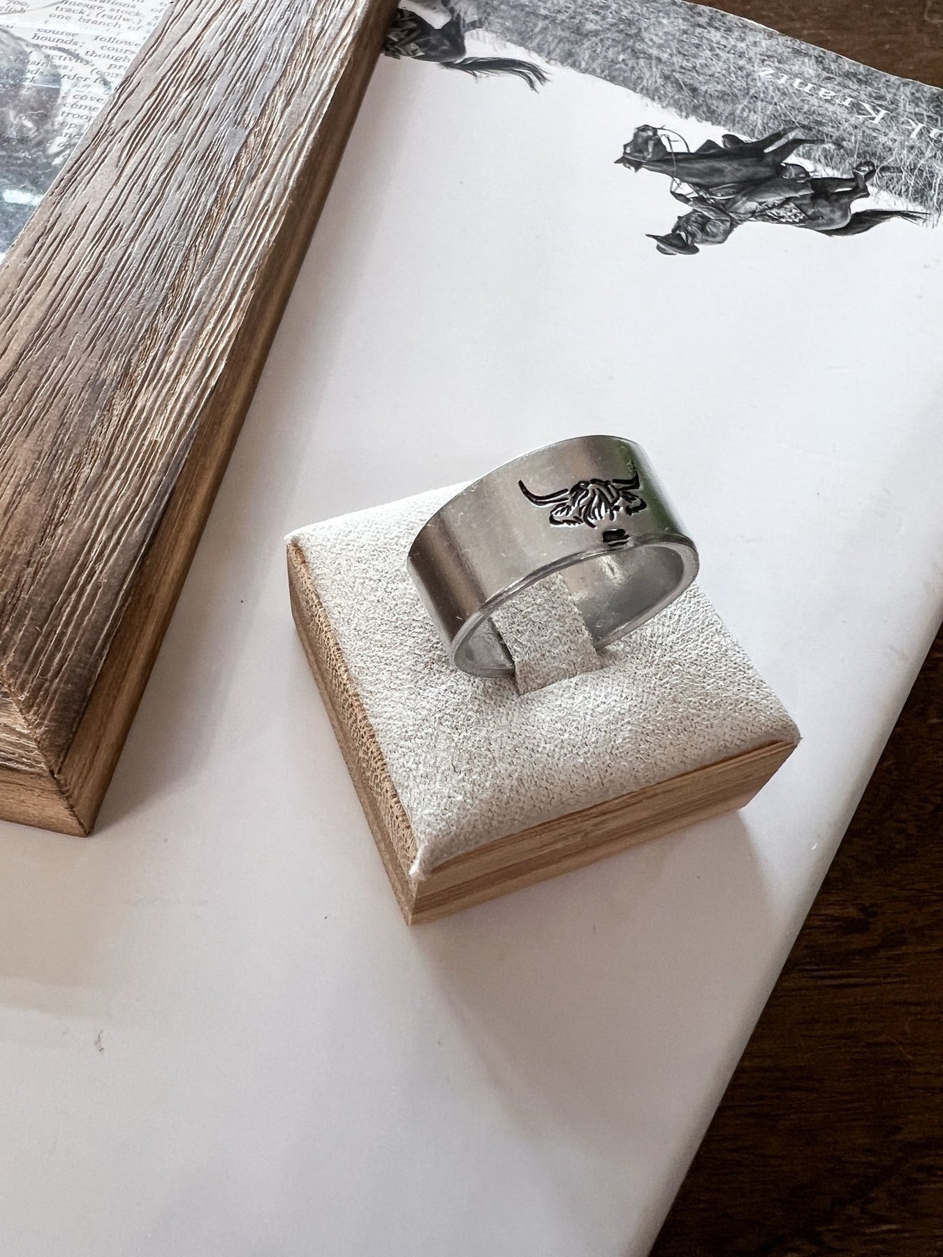Handcrafted with care and hand stamped with a steer, this ring showcases unique craftsmanship while adding a touch of western to any outfit.