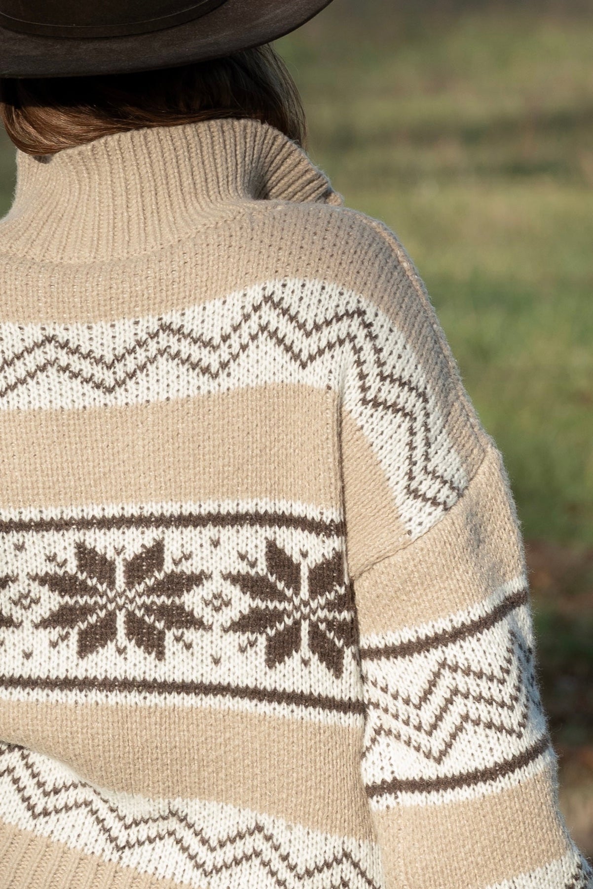 This full zip knit sweater brings together cozy comfort and classic western charm. Designed in warm neutral tones with a bold pattern, it features a relaxed fit, ribbed edges, and handy front pockets for extra practicality. Soft, plush, and easy to layer, it’s the perfect piece for chilly days, pair it with your favorite denim for an effortlessly stylish look.