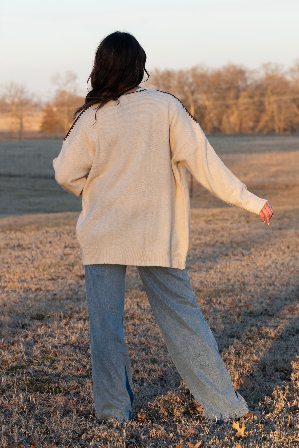This eye catching cardigan feature bold contrasting stitch detail along the front and pockets. Crafted from an ultra soft, lightweight knit that’s perfect for warmer weather layering. Easy to dress up for a casual workday or throw on with denim for a laid back day out with friends. A staple you’ll reach for all season long.