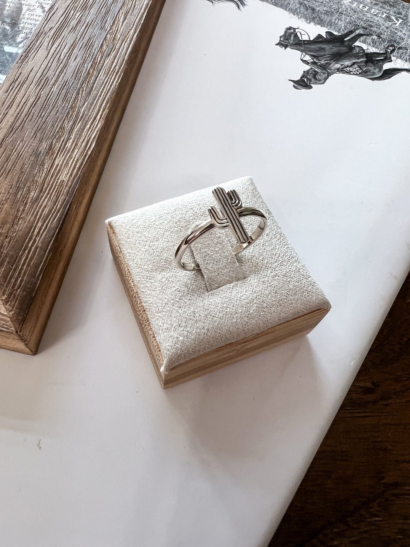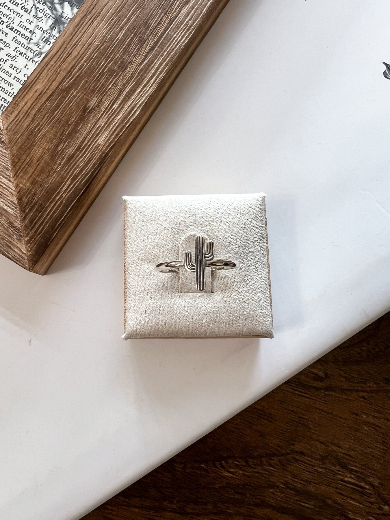 This sterling silver cactus ring features a beautifully detailed cactus design. Its rustic charm and timeless style make it an easy piece to wear every day, whether stacked with your favorites or worn on its own.